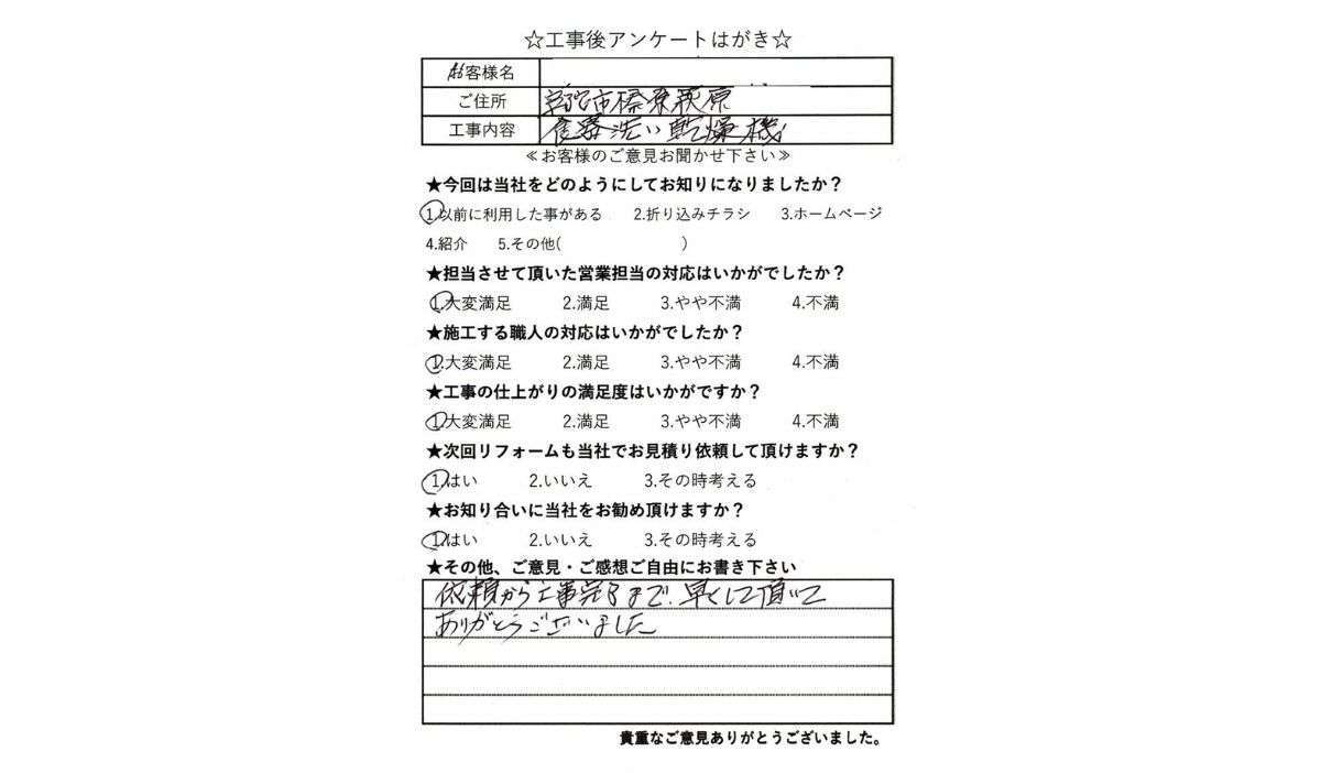 食洗機交換工事